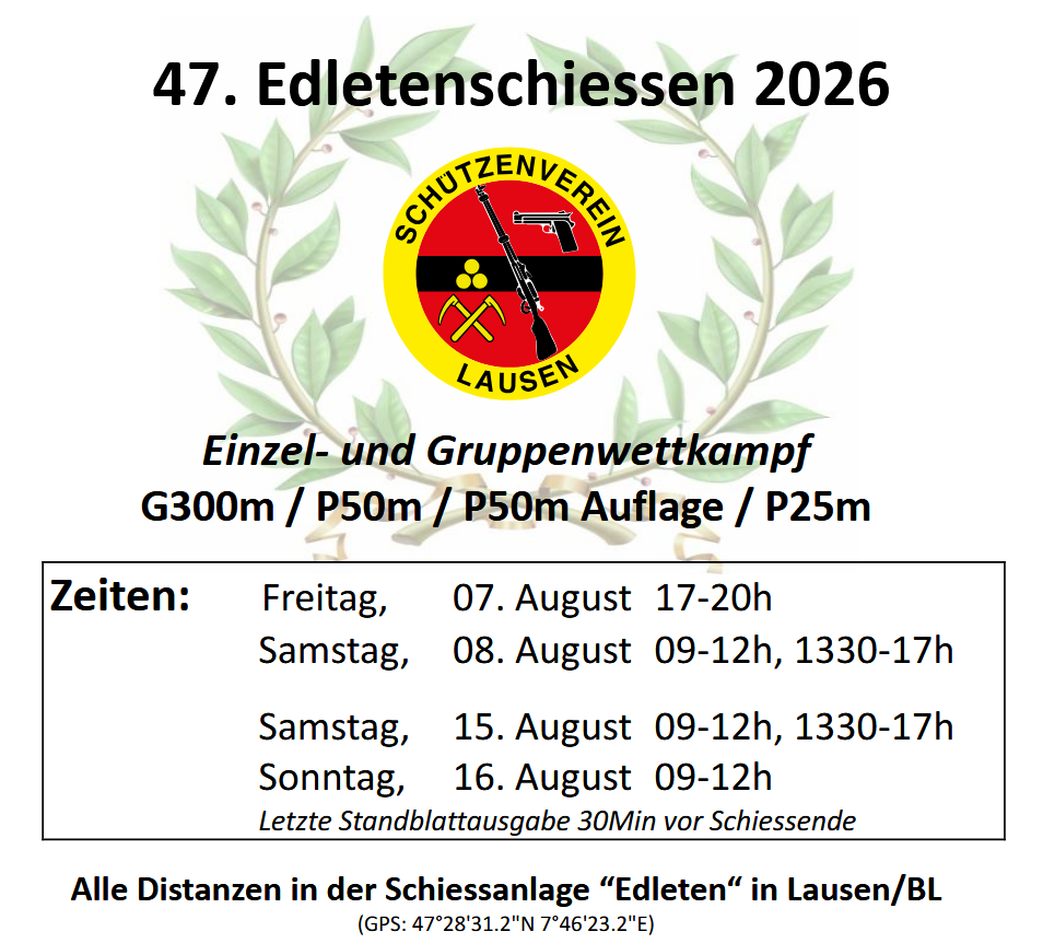 Herzlich Willkommen beim Schützenverein Lausen! Hier gehts zu den Jungschützen Hier gehts zum Edletenschiessen