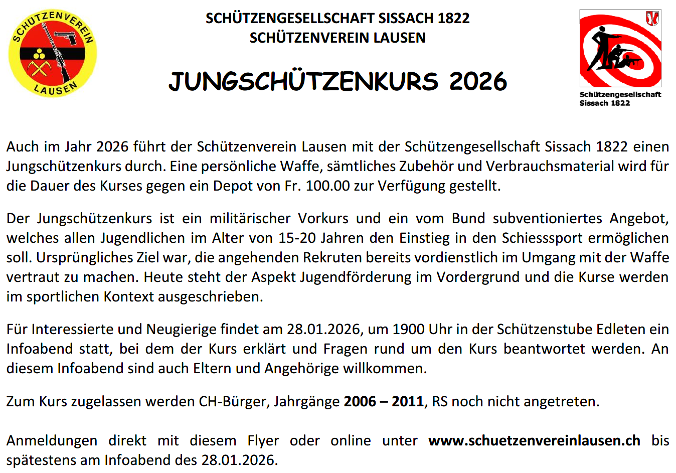 Herzlich Willkommen beim Schützenverein Lausen! Hier gehts zu den Jungschützen Hier gehts zum Edletenschiessen